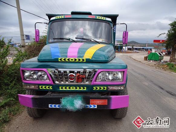 罗平小伙驾驶彩色拖拉机上路 涉非法改装被罚