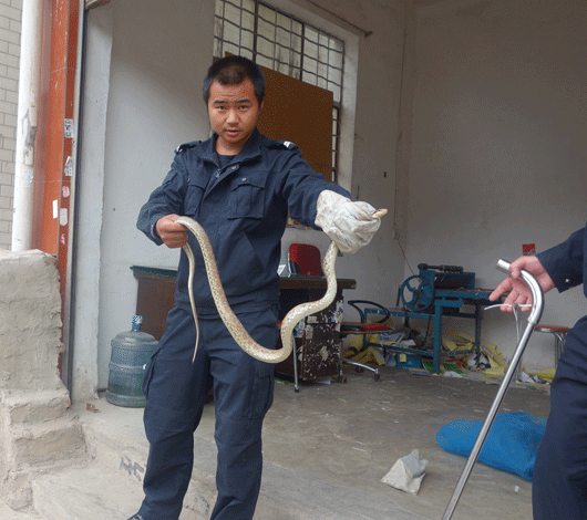 5251031分,西山森林公安分局值班民警接市局110指令称,在西山区亚龙小区内有一条蛇,请求森林公安救助。