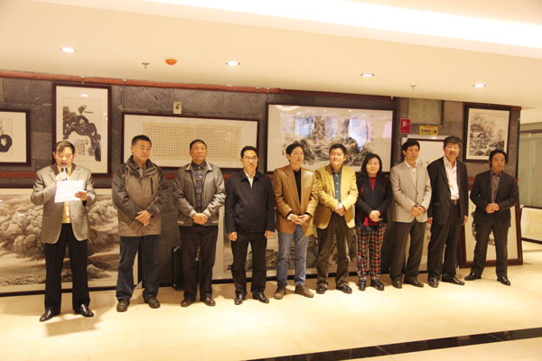 春城书画院院长华生在开幕式上致辞。春城书画院成立于2008年。在过去的5年多时间里,春城书画院没有固定的活动场所和资金来源,书画家们全凭对书画艺术的执着和信念,借助社会各界的关心和支持,先后成功举办了4次“云南十人书画展”和一届云南书画小品展及3次有影响的个展及书画交流活动;并先后获得了书画人的积极支持和响应、也得到了各级领导和社会各界的充分肯定和高度关注。