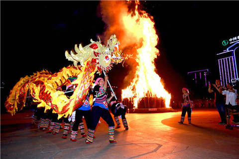 与此同时,全县各地村村寨寨点起火把,从县城到乡镇,从大西神山到练水之滨、从凤窝庄园到小街温泉,彝乡大地舞动着熊熊燃烧的火把,沉浸在欢乐的海洋中。