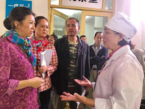剧照:农民工的孕妇妻子(左一)来到医院急诊室
