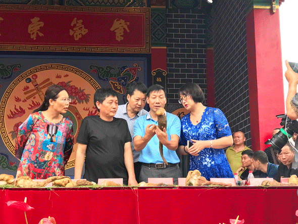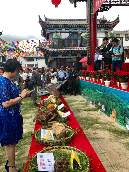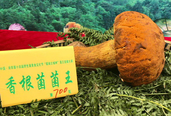 下午5点,南华野生美食文化节“镇南古城杯”菌王选拔大赛落下帷幕。松茸以845克重量荣获菌王,块菌(黑松露)以855克重量荣获菌王,牛肝菌以1130克获得菌王,虎掌菌1935克获得菌王,香根菌以700克7重量获得菌王,杉老苞1380克获得菌王,云芝菌菌王9030克, 灵芝菌菌王8310克,干巴菌菌王710克,鸡枞菌725克荣获菌王。本次菌王选拔大赛选拔菌王标准为重量和新鲜程度,评委介绍今年的菌子和去年相比上了一个大台阶。