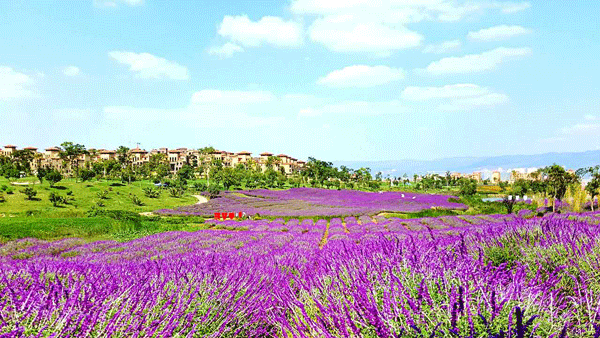 据悉,金麟湾爱情小镇拟打造成“中国的普罗旺斯”,小镇内种上了千亩薰衣草。由于曲靖气候适宜,爱情小镇种植的部分鲜花的花期长达三个月以上,千亩花海的鲜花包括薰衣草、高雪轮、冰岛虞美人、蜂室花、西洋滨菊、硫华菊、金光菊、堆心菊、紫松果菊、向日葵、紫罗兰等数十个品种。现场,大片大片紫色的花和绿叶相辉映,美不胜收。