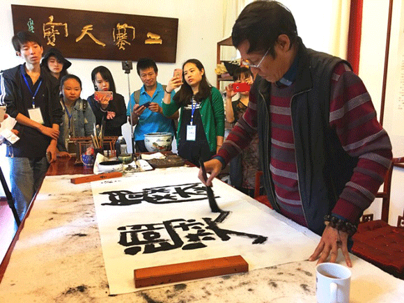 (记者 范云) 9月8日上午,全国网络媒体曲靖行的采访团来到曲靖一中参观曲靖爨文化博物馆。博物馆坐落于市中心,紧邻曲靖一中,穿过幽静雅致古式庭院后,便能看见镇馆之宝——爨宝子碑。爨文化博物馆馆长王平永老师为全国网络媒体记者讲解天下第一神品—爨宝子碑,解读爨文化的艺术价值。曲靖一中李晶校长向记者朋友们介绍了曲靖一中的办学情况,二爨书画院院长陈正义老师挥毫泼墨为云南网题写爨体字。