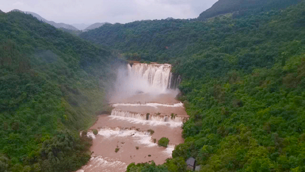 据了解,眼下正处于九龙瀑布丰水期,水流湍急瀑面宽阔,河水从悬崖泻出,以雷霆万钧之势倾入崖底脚潭。响声如雷,轰振河谷,气势磅礴。