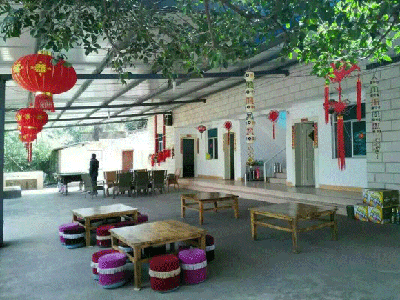 五彩农家乐是一个依山傍水的休闲山庄,位于昆明小龙高速军马场收费站附近,嵩明县长松园林场大院内,距昆明北收费站24公里,离嵩明县城7公里。这里交通便利,环境优美。占地面积近20余亩,山庄有独立围院,有球场、菜地、竹园、果树等,另外还有你可能喜欢的台球、麻将、扑克、蓝球、喝茶、音乐等娱乐设施,山庄附近800米处有蓝莓基地,200米处还有台湾薰衣草基地。这里树木郁郁葱葱,路旁枝叶茂盛,雅致惬意不可言喻。林荫小道旁一棵棵树木花木犹如一把把绿伞把太阳的热浪遮挡在外,这里就像走进植物园的绿色世界。