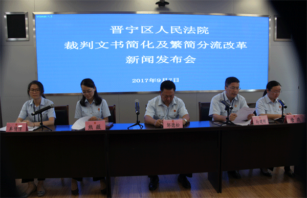 9月7日,晋宁法院 召开新闻通报会,通报该院“繁简分流、文书简化”改革2年多的实践的经验和成果。