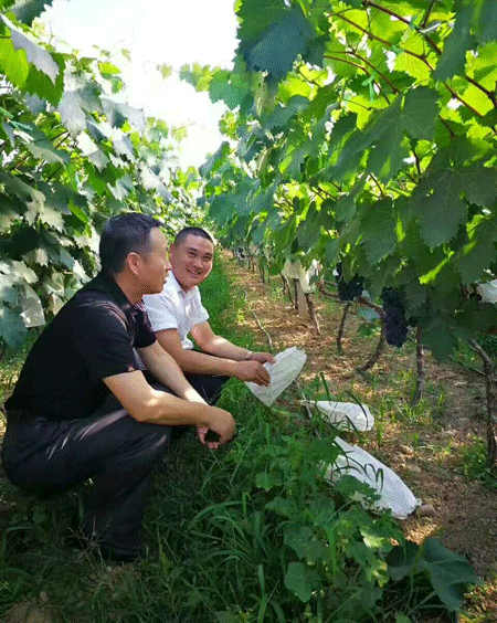 一年后,带着梦想,他独自一人到山东考察学习葡萄种植技术,并引进红提葡萄在自家的两亩责任田内试种,同时在熟人圈里以签订鲜果回收协议的形式进行推广。