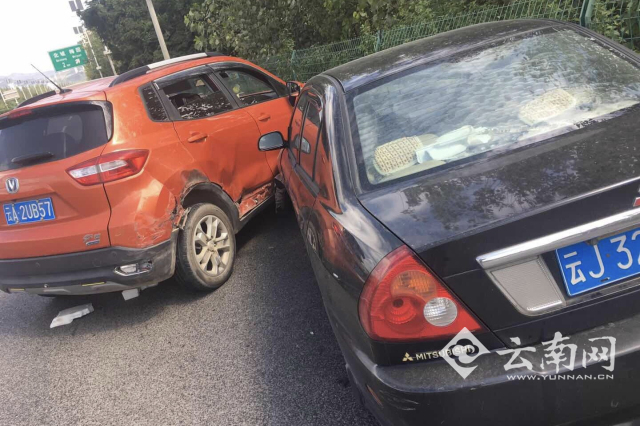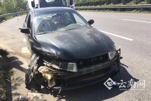 10月6日上午11时35分,云南交警高支队昆玉大队二中队接到报警,称昆玉高速公路玉溪往昆明方向K79路段,发生一起两辆小车相撞的交通事故。执勤民警赶到现场发现,除两车受损外,还有一人轻微受伤。