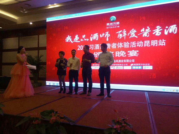 10月28日下午3点,由贵州茅台酒厂【集团】习酒有限公司和【糖酒周刊】联合举办,云南醉临风酒业有限公司承办,“我是品酒师,醉爱酱香酒”2017习酒全国消费者体验活动,在昆明世纪金源大饭店举行。参加会议的人有来自云南省食品行业协会和贵州习酒的新老客户,各大企业的负责人180余人。大家齐聚一堂,共品佳酿。晚上,还有精彩纷呈的歌舞答谢晚宴。本次活动得到了【网易】、【今日头条】、【搜狐】、【新浪】、【中国网】、【云南经济日报】、【云南法制经济网】、【云南商会网】等媒体的支持。