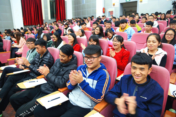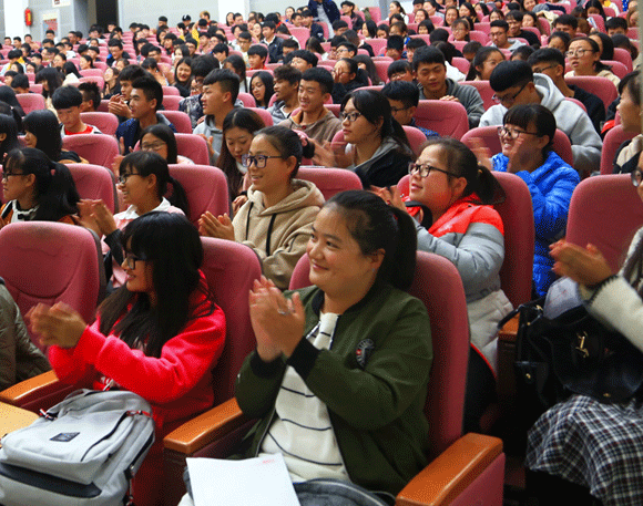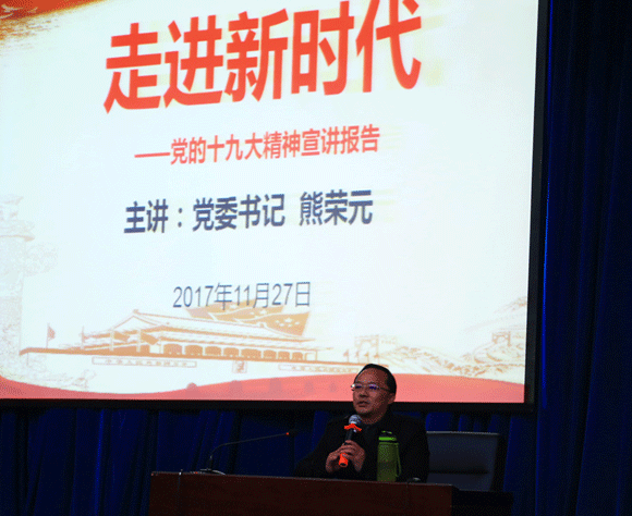 2017年11月27日晚,文山学院党委书记熊荣元以“走进新时代——党的十九大精神”为主题在学校艺馨楼报告厅宣讲党的十九大精神。学校党委组织部、宣传部、思想政治理论课教师及500余名同学聆听了报告。