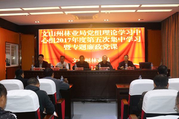 12月4日上午,文山州林业局组织局机关及下属单位全体干部职工100余人在9楼视频会议室参加文山州林业局党组理论学习中心组第五次集中学习暨专题廉政党课。