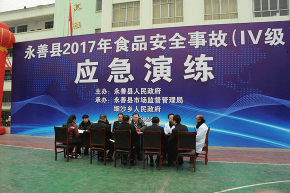 为进一步加强在食品安全事故发生的紧急情况下,能够迅速、高效、有序做好事故处置的应急工作,提高应对突发食品安全事故组织指挥、快速响应和处置能力,最大限度降低事故危害,12月29日,永善县在细沙中学举行2017年食品安全事故应急演练。
