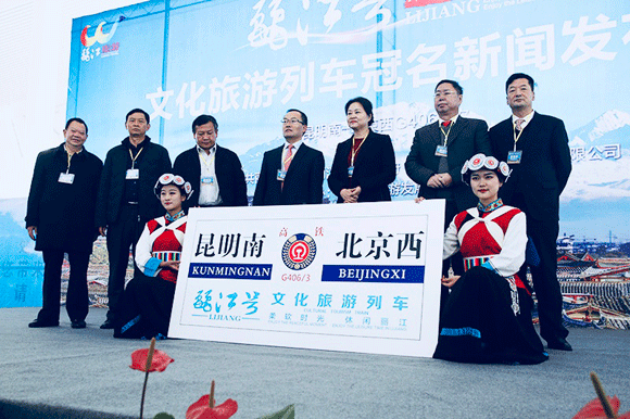 (记者 范云) 2018年1月23日,浸透着丽江民族文化风情的G406次高铁从昆明南站启动,驶向首都北京。由此,“丽江号”文化旅游列车再启程。此次“丽江号”文化旅游列车冠名活动由中共丽江市委、丽江市人民政府、中国铁路昆明局集团有限公司主办,由丽江市旅游发展委员会承办。据悉,这是丽江以高铁为载体,打造旅游文化“移动长廊”,创新旅游宣传促销方式的新举措。