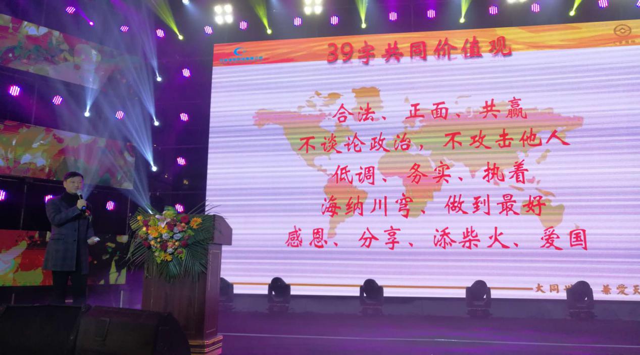 大同世界®促进会全球总部常委吴开智作了“不忘初心,拥抱未来”主题分享,结合世界经济和文化发展大趋势,强调党的十八大以来,特别是十九大以后,中国必将成为事实上的全球化领导者和规则制定者,现在世界各地的华人企业家和国内的很多企业家一样,都处在经济全球化的重大历史机遇的风口浪尖。今天的世界已经不是单打独斗的时代,也不是简单抱团取暖的时代。而是要有真正国际化视野,有系统的团结与自己理念价值观一致的企业家、产业链上下游同行、各界专家、金融机构以及各国、各地区领导来为共同的事业而努力,让自己成为未来全球实现一体化的“大同世界”中重要的组成部分,走向共同成功、共同富裕的美好未来!