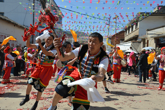 踩街仪式在喜庆的鞭炮声中启动,舞狮,花棍,扇子舞,秧老鼓等。12个赋有彝乡特色的文艺节目闪亮登场,隆重而喜庆。乡亲们脸上洋溢着喜悦,满怀着对未来美好生活的憧憬。新春踩街是双和彝乡传统的庆典活动,寓意着即将开始美好的一年,充满希望的一年。