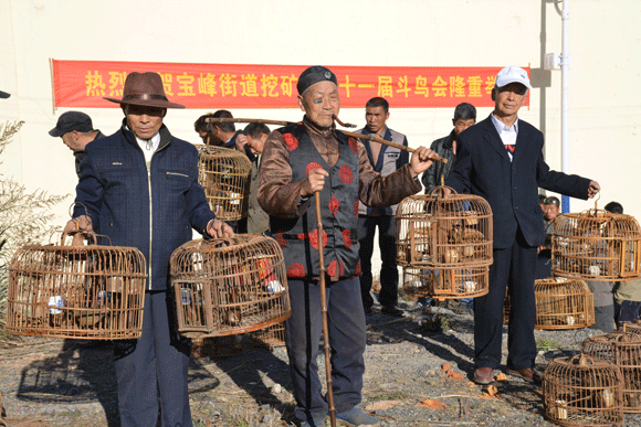 1999年,几位爱鸟者自发组织了“六宝双”斗鸟协会,举办斗鸟会,今年已是第十一届。往届比赛吸引了周边六街、双河、安宁、玉溪等地的养鸟爱好者齐约在挖矿坡,规模不断扩大,爱好者们在比赛中以鸟会友,交流经验,推动养鸟文化的发展。
