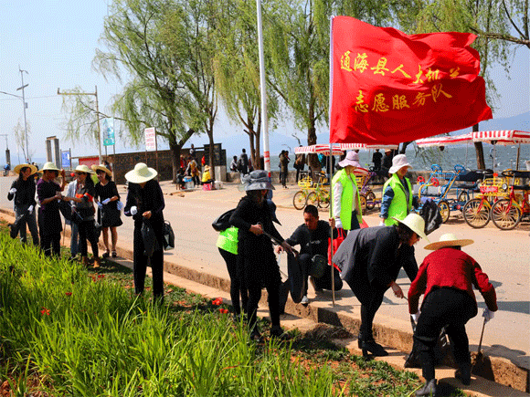 36日下午,通海县人大常委会组织机关干部职工前往杞麓湖,积极开展以捡拾白色垃圾、整治环境卫生、保护“母亲湖”为主要内容的“关爱自然”志愿服务活动。