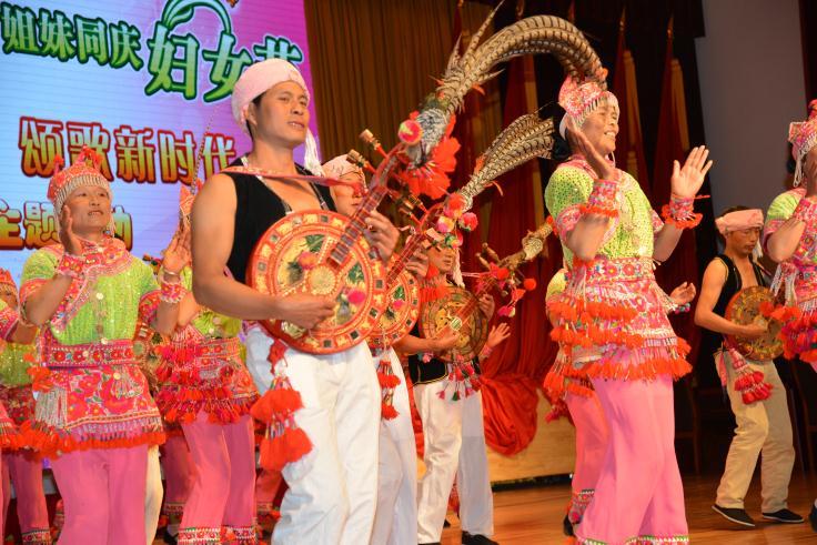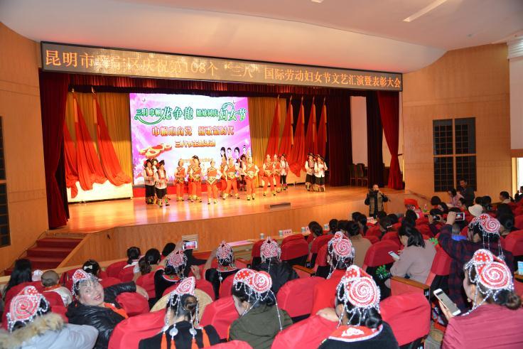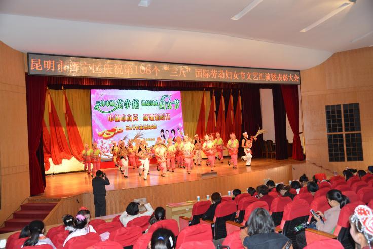 38日,由中共昆明市晋宁区委、晋宁区人民政府、区妇联联合举办的“巾帼心向党 颂歌新时代”文艺汇演在晋宁会堂举行,来自全区各界妇女代表队用自编自演的花灯歌舞表演展示新时代妇女的风采,纪念第108个国际三八妇女节。