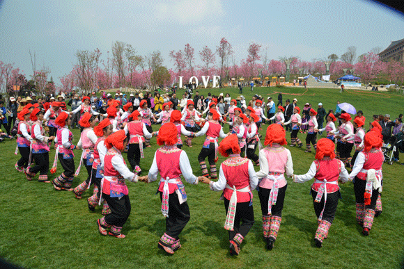 一边是宏大优美的交响乐曲,一边是欢快喜庆的晋宁彝族秧佬鼓;一边是娇艳绽放的粉红樱花,一边是水波微澜的清澈滇池。17日,七彩云南•古滇名城第三届樱花节期间,雅俗共赏的乐、优美的春日盛景,给游客和本地居民带去了不一样的视听感受。