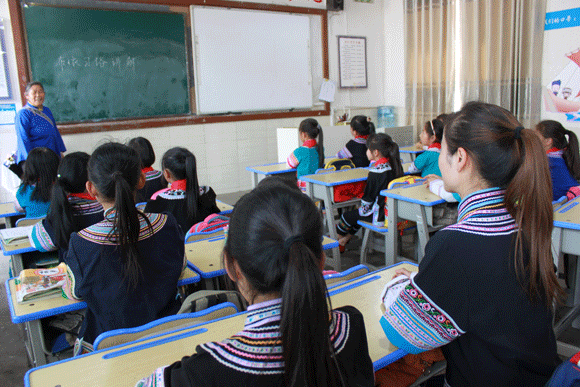 “你来自哪里?”“我们在这儿等你。”“要在学校里好好读书.....”等用民族语言相互交流的话语,在罗平县长底布依族乡完小已经成为一道亮丽的风景线,既增进了师生之间、同学之间的情感,也留住了乡愁。