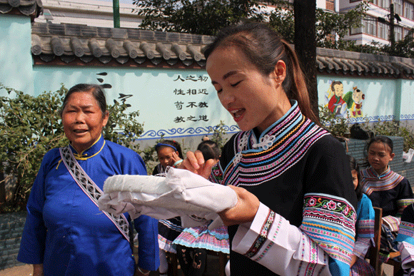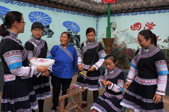 今年3月开学以来,罗平长底布依族乡完小邀请布依民间艺人,让布依刺绣特色文化走进课堂,通过展示、体验等形式向幼儿展示非物质文化遗产布依刺绣的魅力。