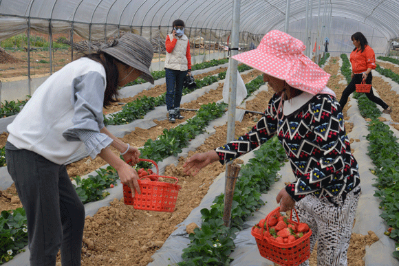 近日游客纷纷来到昆明市晋宁区二街镇鲁黑委会鲁黑村采摘草莓。据了解,这里的草莓采取无公害绿色标准化栽培模式,草莓个头大味道甜。近年来,二街的鲁黑村在政府的大力帮扶下,越好越多的“好货”走出了村外,草莓、蓝莓、松露等受到了外来游客的青睐。结合乡村振兴战略,二街镇将打造品牌示范,因地制宜推动乡村生态农特产品、特色乡村旅游、民族文化产品,在区域内形成引领示范带动作用,带领群众增收致富。
