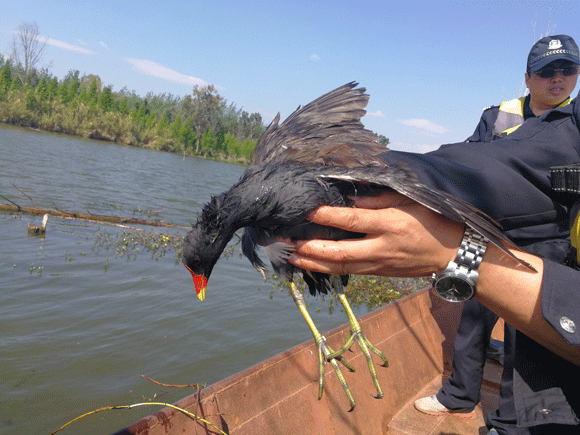 412日上午,晋宁区森林公安局又联合区水务(滇池管理)局对入湖河口湿地鸟类栖息地、滇池水面区域非法猎捕野生鸟类及禁渔期违法捕捞作业等开展了联合巡护。此次联合巡护共取缔捕鱼的地笼4个,长约100米;拆除捕鸟网3张,长约80米,解救三有动物---秧鸡一只。
