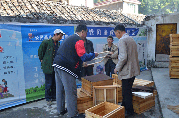 宣威市安监局在前期深入挂钩联系户调查了解的基础上,针对当地气候环境及农户情况,有针对性的开展养蜂产业扶贫攻坚。为了确保养蜂产业精准扶贫取得实效,市安监局委托养蜂协会专家对贫困户进行手把手培训,培训采用理论教学、互动提问讨论和实地操作相结合的模式。在实地操作时,养蜂协会专家详细讲授了分蜂技术。在开箱检查蜜蜂的同时,向大家讲解开箱注意事项及操作方法,如:如何察看蜂蜜及蜂粉贮存情况;如何判定有无蜂王;如何分析蜜蜂子脾发育情况等。整个培训工作以老厂村委会建档立卡贫困户为主要培训对象,现场培训养蜂知识30余人,免费发放蜂箱80套。