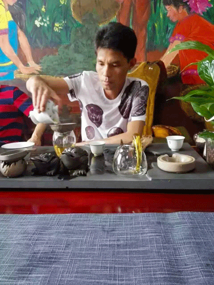 据了解,家庭经济条件不好的张光明没读完小学就辍学了,他甚至很少有机会走出大山。到最近的集镇,30多公里的山路,只能看运气才能坐到出山的拖拉机,他的愿望,是有一辆摩托,而那时,整个山寨别说摩托,就是拖拉机也只有两台。1999年,5岁时的张光明,第一次跟着大人到两公里外的茶林采茶,那时他还不会爬树,只能仰头看着大人们从高高的树上把绿色摘下。大人们会把绿叶夹在自家带来的豆腐中,混合着一并吃下,这样一顿简单的饭便是一天劳动最大的犒劳。竹箩里背着一天劳动的果实回到村寨,开始了炒茶,揉捻,晒干;