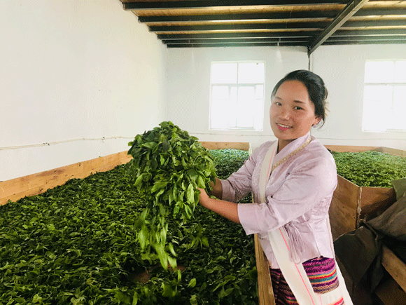 景迈山翁基巴朗茶魂茶业公司总经理安恳正在筛选鲜叶