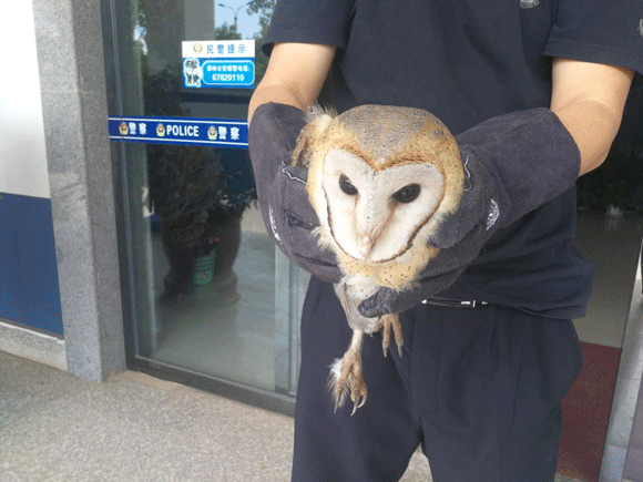 511204分,晋宁区森林公安局接晋宁公安分局110指挥中心电话指令称:“晋宁区第三中学的门卫发现一只疑似猫头鹰的动物,请前往处置。”