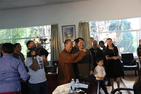 5月5日下午,由云南政协报社主办,主题为“翰墨传欧美——樊端然书法艺术分享会”的第九场彩云读书会在云南政协报会议室成功举行。中国著名旅美书法家、美国杨伯翰大学中国书法教授樊端然先生,以一颗拳拳爱国之心、深深华夏之情,立足中国源远流长、震古烁今的书法艺术,着眼世界文化的背景,从文化、历史、时代、传承等多个角度和维度,分享了中国书法艺术所涵纳的人文情怀,以及他的书法创作心得及教学体会。参加彩云读书会的有相关退休老领导,中央民族大学法学院院长徐中起、云南人民出版社原社长、当代作家胡廷武、云南省文史馆原副馆长苏建华、英茂集团总裁李锦泉、樊端然的大学同学徐中起、樊建、钱丙申、全国政协委员崇化、云南省红十字会专职副会长潘晓玲、回族女高音歌唱家杨慈等嘉宾及书画爱好者、书画收藏者、各企业家。国家、省级电视、《云南政协报》、《云南法制报》等媒体、新华网、中新网、云南法制经济网、腾讯新闻云南法制经济网、天天快报云南法制经济网等网络媒体。会场充满着浓厚的文化艺术氛围,时而热烈鼓掌,时而幽静聆听,演讲激情澎湃,达到文化艺术的情感升华。现场书写使会场气氛到达了高潮,争看樊教授的书法表演。本场读书会的成功举办,有助于增进大众对书法文化艺术的了解,有助于国人对中国书法艺术在欧美教学传播现状的了解。将进一步增强我们的文化自信,自觉践行中华民族优秀传统文化的学习、研究与传播!