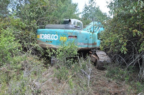 2018年4月8日10时32分,昆明市晋宁区森林公安局接二街镇响水村委会巡山人员电话报警称:“在二街镇响水村委会锅底箐坡头的树林里发现一台挖掘机,在挖掘机的旁边有一条新修的路,路边堆着些被推到的林木,但现场没有人,请你们前来调查。”