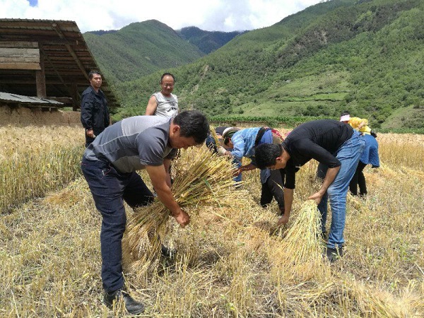 通过支部结对联建党群,开展“同吃同住同劳动”定点扶贫工作。一是,同吃一顿团圆饭,共叙民族团结谢党恩。与群众共同生火做饭同吃团圆饭,忆苦思甜,共话团结向上,奋力拼搏,民族团结的友谊情,干群情,来之不易,要倍加珍惜。二是,同住一晚屋檐下,共叙脱贫致富谢党恩,工作组分组分人到贫困户家中入住,看家中两不愁三保障是否达标,看看被褥厚薄,居住环境能否遮风避雨,共叙国家惠农政策到户到位情况,感谢党恩浩荡;三是,同收一亩青稞地,共叙产业发展谢党恩。党员干部与群众抢收青稞,打扫卫生,收拾房屋,共叙干部结对好政策,产业发展好盼头,激发内生动力产业致富。