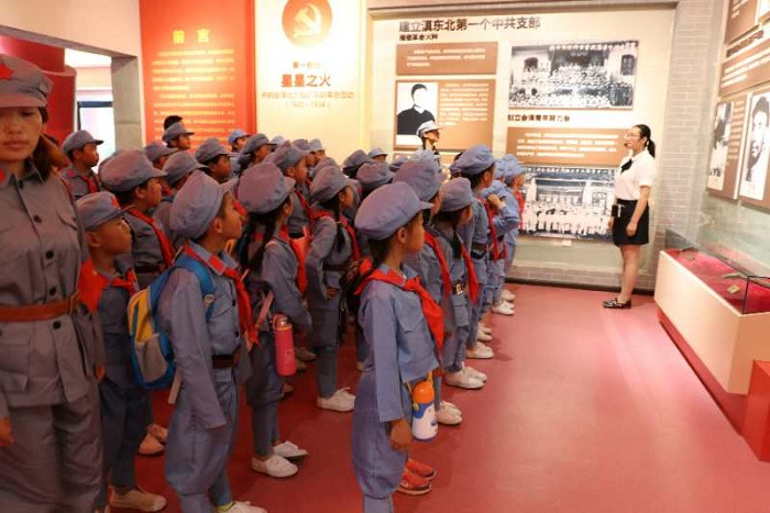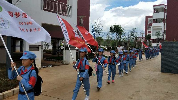 (记者 吴鲜)近日,56名少年队员着装小红军服在辅导员老师带领下来到会泽红色文化展览馆,缅怀红色文化。参加由云南会泽县春晖小学主办,会泽县红色文化展览馆、会泽县新华书店、会泽县人民武装部协办2018“闪闪的红星”主题教育,暨“圆梦浦公英”夏令营在红色文化展览馆举行开营仪式。