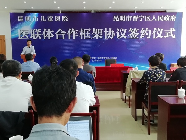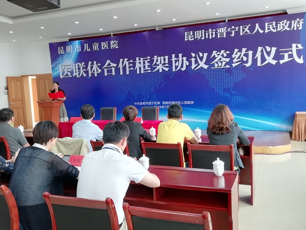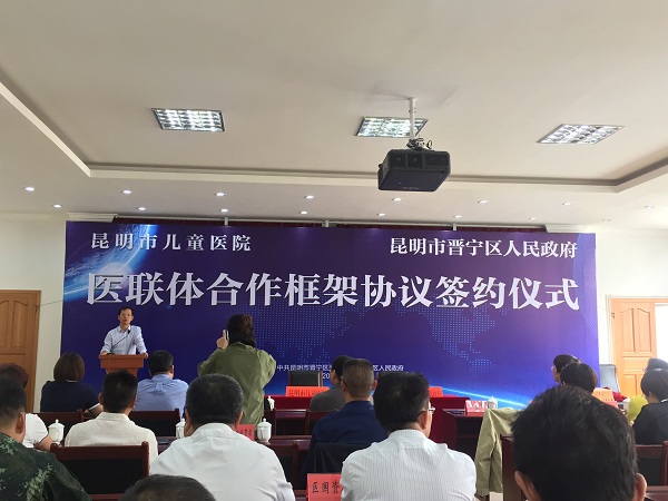 昆明市儿童医院与晋宁区经过前期的友好洽谈和磋商,本着优势互补、合作共赢的原则,达成了共识,在晋宁区妇幼保健计划生育服务中心的基础上成立昆明市儿童医院晋宁分院,通过昆明市儿童医院提供的优质管理支持、优质医疗团队支持及综合信息技术支持等,实现市级优质医疗资源下沉基层,使晋宁区优质医疗资源得到强有力的补充,为辖区内的群众提供更优质的医疗服务,真正缓解群众,特别是妇女儿童看病难的实际,实现区域内医疗资源可持续发展,医改有创新的目标任务。