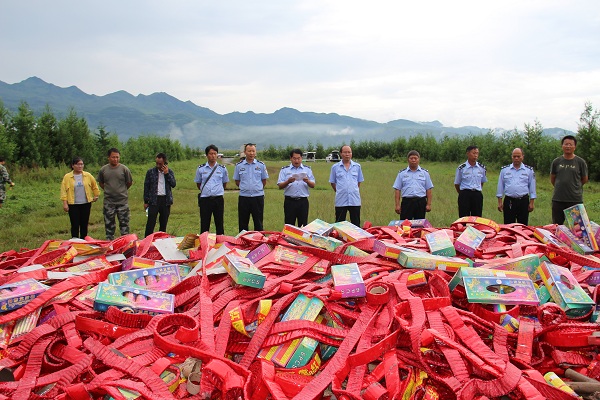 云南曲靖:罗平县集中销毁非法烟花爆竹1536件