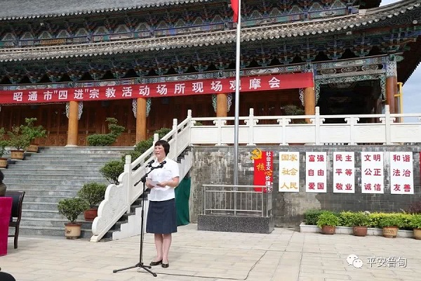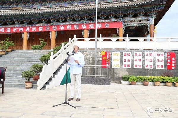 近日,全市“四进”宗教活动场所现场观摩会在鲁甸县桃源回族乡龙头山清真寺隆重举行,在观摩会现场举行了庄严隆重的升国旗、奏国歌仪式,现场向清真寺赠送了宪法等法律法规书籍。市委常委、市委统战部部长申琼出席观摩会并作重要讲话,县委常委、统战部部长、政法委书记马晗在观摩会上致辞,县伊协常务副会长阮应占对“四进”活动作了表态发言。活动由市民宗局副局长王高云主持。
