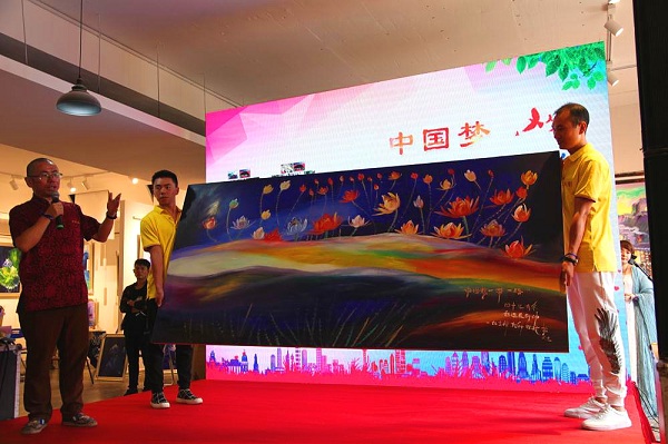 在中国梦爱心助你上大学大型募捐公益活动现场展示画作