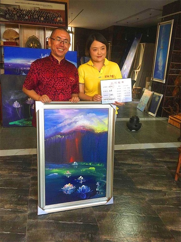 云南著名画家丁昌胜捐赠油画共募集108484元,为品学兼优的特殊贫困大学生贡献一份爱心。
