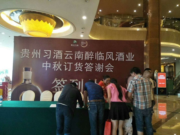 云南醉临风酒业有限公司总经理蒙礼秘介绍:本公司创建于2012年,是一家专业的酒类营销公司,为贵州习酒昆明签约全渠道经销商,主要签的产品有:习酒1988、习酒窖藏1998、金质习酒、银质习酒、老习酒、浓香系列等产品。本公司还经销各类国产、进口红酒、公司年销售额为9000万元以上,为感谢广大客户对习酒的关心与支持,特联合习酒公司开展中秋订货会感恩回馈活动。