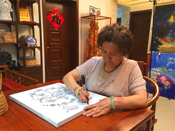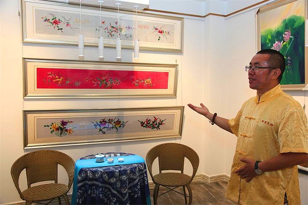 著名画家丁昌胜讲解他母亲的绘画、手绣作品