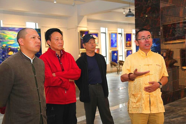 (记者 钱丙申摄影报道)9月7日,在丁昌胜美术馆,丁昌胜先生以七彩莲花的善、孝文化为依托,和各界人士交流探讨一直认为把每月7号作为“大宝七彩莲花画展家风日”。