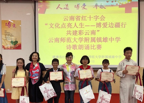 云南师范大学附属镇雄中学胡克州校长说:“文化点亮人生——博爱边疆行 共建彩云南”这一红十字青少年项目立意高远,综合效益显著,对于拓展学生国际视野、树立宽广胸怀、增强人道博爱奉献意识、提升综合素质将会有很大帮助。他希望省红十字会爱心大使张惠、赵红锦两位老师多到基层进行辅导,因为基层太需要来自各方面优秀人才的指导提升。