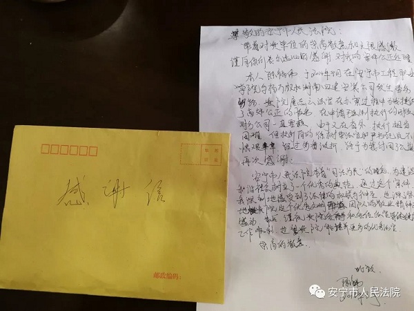 “谢谢你们,法官,是你们让我能够拿到赔偿款。”9月12日,拿到此案全部赔偿款的陈福伟将准备好的感谢信和锦旗递到了徐树荣法官的手里。“你不用感谢我们,这是我们的责任”,接过锦旗,徐树荣法官说道。