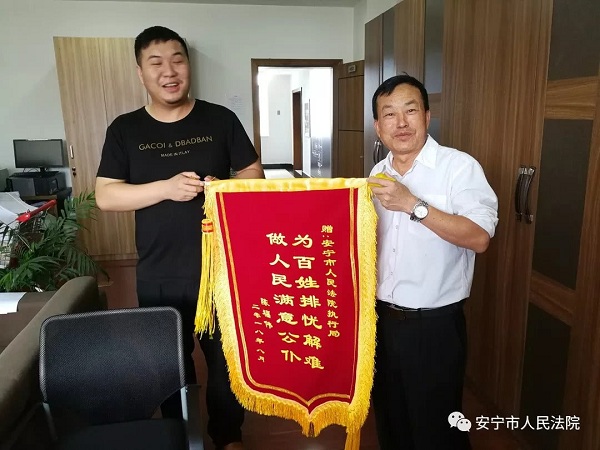 (记者 钱丙申 通讯员 张弟)9月12日,一位来自云南省巧家县的申请执行人陈福伟拿着一封感谢信和一面锦旗来到安宁法院执行局徐树荣法官办公室,感谢徐树荣团队在其申请执行的提供劳务者受害责任纠纷一案中不辞辛劳,为其成功追回因工受伤的赔偿款53133.8元。