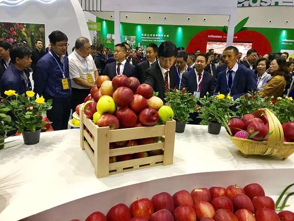 昭阳区委宣传部部长沈洋(中)出席昭通苹果展销大会