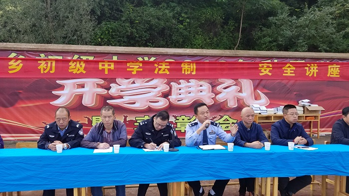安监站负责人以《珍惜生命、时时绷紧安全之弦》为核心,从应急救援演练、食品卫生安全、用电安全等方面对广大师生、家长进行宣传教育。派出所负责人以《小手拉大手、争做好学生、好孩子》为主题,讲解校园里自带管制刀具棍棒、打架斗殴、夜不归宿、偷盗等方面的安全隐患。冒水井交警中队负责人从交通安全知识、交通法规等方面进行讲解。通过大量发生在身边的交通事故案例,对学生上下学骑自行车、过十字路口、走亲访友出行等极易发生危险的环节进行提醒,在大家心中引起了强烈的震撼。乡分管领导、学校负责人分别从科普、家校结合教育等方面进行全方位的宣传教育。