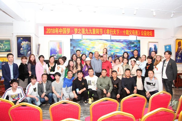 (记者 钱丙申摄影报道)10月17日,由丁昌胜美术馆主办,隆重举行2018年中国梦·梦之莲九九重阳节《孝行天下 十跪父母恩》公益论坛。其内容为中国梦·梦之莲九九重阳节《孝行天下 十跪父母恩》论坛直播;云南精英新闻发布会;健康父母行系列活动。此活动得到了昆明经开区政府的大力支持,参加活动的人数来自社会各专家,学者,退休领导,医生,企业家及各阶层社会精英,欢聚一堂,汇集在丁昌胜美术馆,畅谈道德、善行、孝道文化,活动采取交流、座谈的方式,大家轻松、自然、显得时而清静、时而热烈,时而又抒发感情、讲到情处还有激情。岁岁重阳,今又重阳。重阳是中华民族的传统节日,又称重九节、晒秋节、“踏秋”。重阳节早在战国时期就已经形成,到了唐代被正式定为民间的节日.今天让九九重阳节,过出文化味。